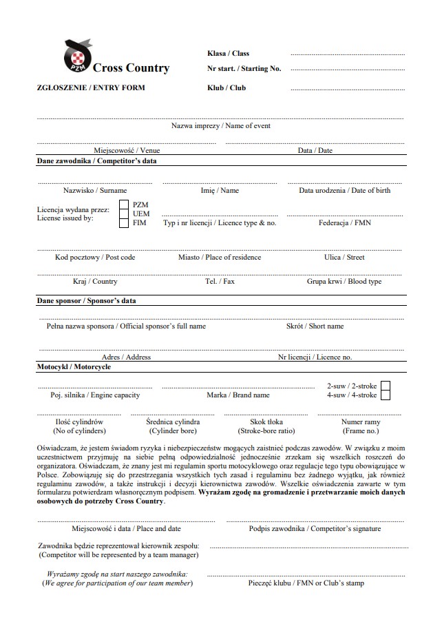 Formularz Zgłoszenia do sobotnich zawodów Can-Am Cross Country Baja Poland jest już gotowy. Prosimy o zapoznanie się z jego treścią: